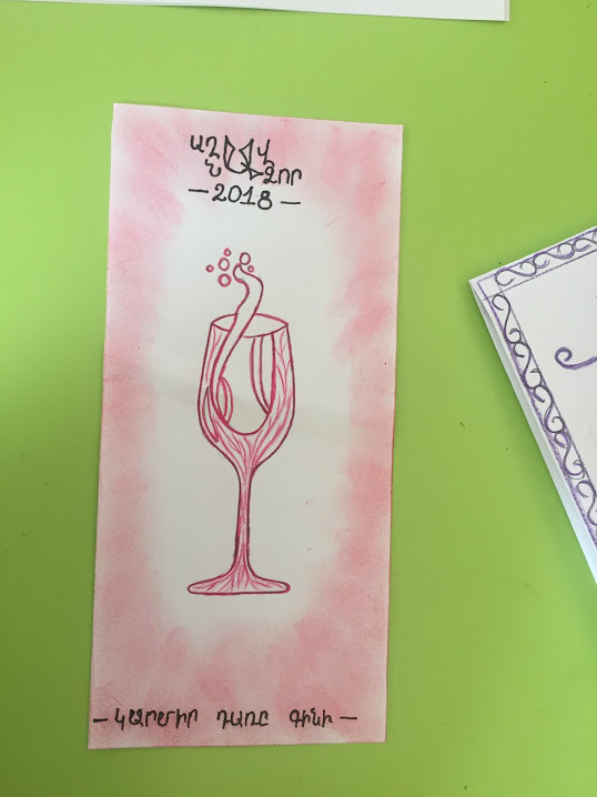 Այսօրվա սեմինարն անցկացրեցինք Հյուսիսային դպրոցի բաց արվեստանոցում։ Սեմինարը ստեղծագործական բնույթ ուներ՝ պատրաստեցինք գինու պիտակներ։ Կազմակերպիչներից յուրաքանչյուրը ջանք չխնայեց, որպեսզի պիտակները լինեն յուրահատուկ և գեղեցիկ։