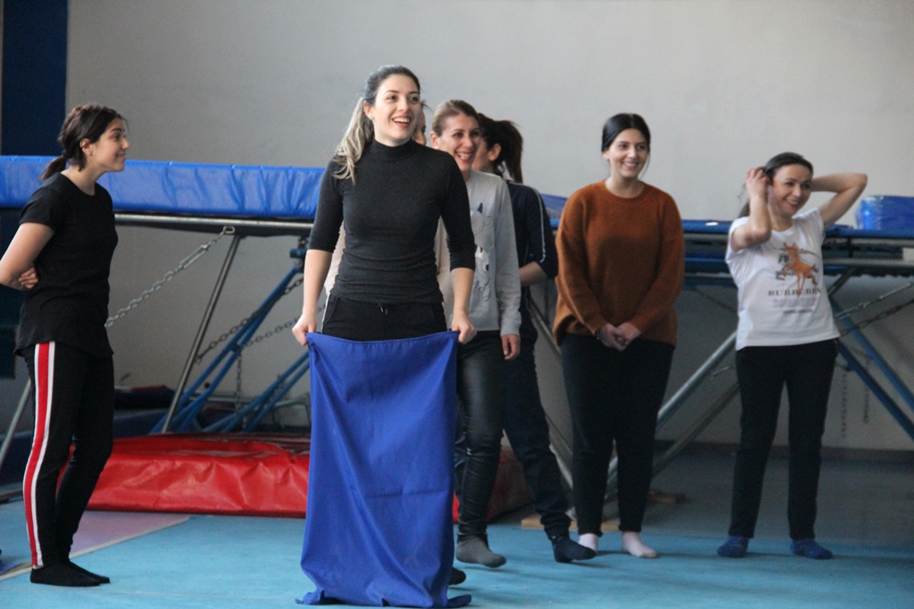 Այսօրվա սեմինար-պարապմունքը մարզական էր։ Սովորեցինք, թէ ինչպես մեզ շրջապատող առարկաներից խաղեր ստանալ ու անցկացնել մարզական պարապմունք երեխաների հետ։ Իսկ վերջում մի լավ մարզվեինք։ Լուսանկարների համար շնորհակալություն՝ Արմինե Թոփչյանին և Նունե Խաչիկօղլյանին։